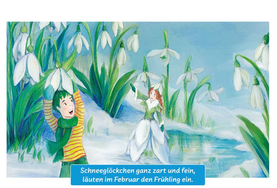 Jede Geschichte endet mit einem Reim, der das jeweilige Thema einprägsam mit dem Monatsnamen verbindet.